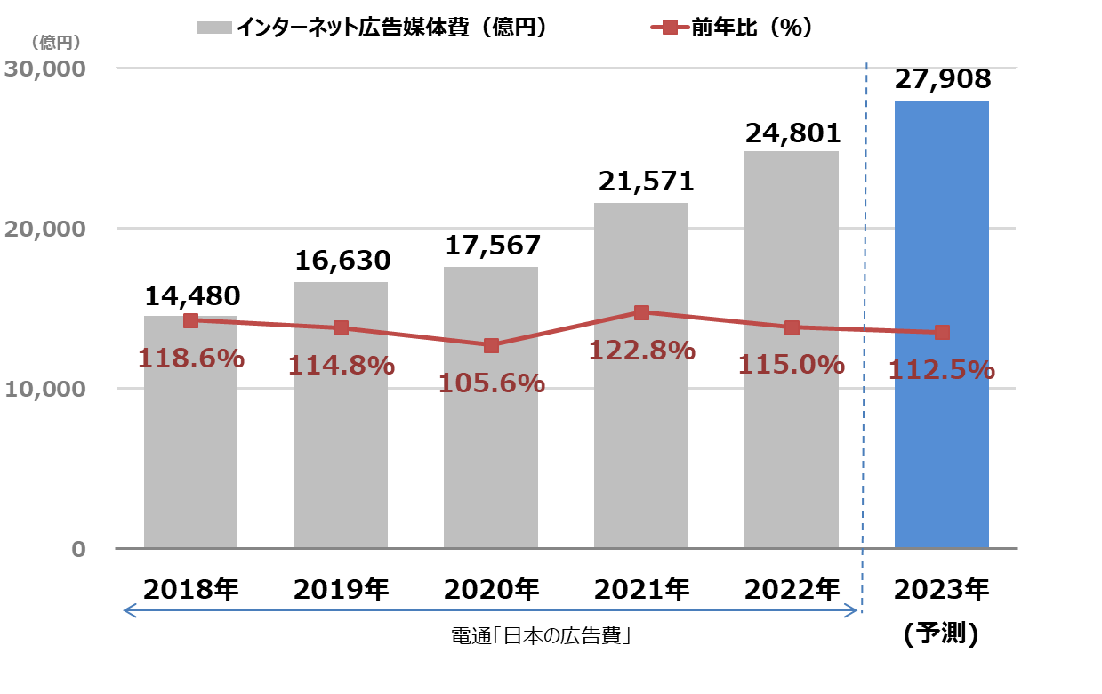 「2022年 日本の広告費 インターネット広告媒体費 詳細分析」 – News(ニュース) – 電通ウェブサイト (dentsu.co.jp)